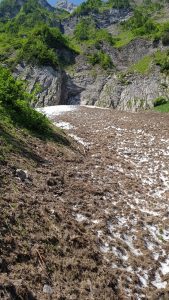 Summary: This section of the hike takes us from the holiday homes of Ällenboden, along the edge of Brünellistock to the homes at Ahoren. This section is the most technical and difficult of the entire hike, being made up of narrow gravel tracks that are often littered with fallen rock.