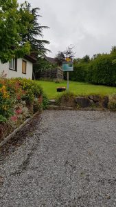 The gravel track finally joins on to a tarmac road, and we walk past Wies and eventually arrive at a larger road, which we walk along, before a signpost directs us off to the right and through behind the properties of this road.