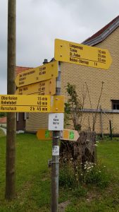 Staying on this track, we follow it as it passes more properties dotted around the landscape, before reaching the signpost at Büelen.