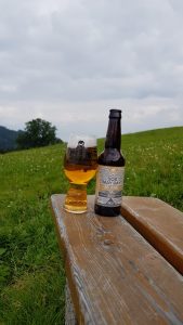 For lunch, I paired traditional Swiss cheese, tomatoes and a selection of cold meats with a glass of SOS (Mayday), a collaboration between Scottish craft brewers Brewdog and BRLO from Berlin. SOS (Mayday) is a Maibock style beer produced as part of Brewdog’s collaborations with a number of European craft brewers. Light and refreshing, it was a perfect accompaniment to a hiking lunch. |