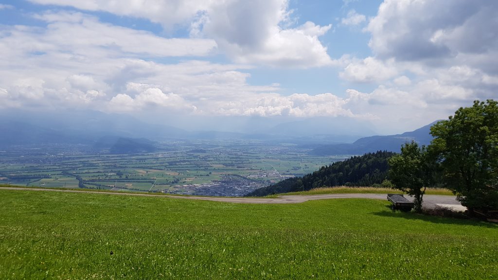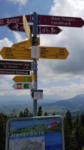 The low-level cloud and drizzle that met us when we started the hike in the morning have thankfully lifted and we are able to get a better view across the valley from St. Anton and Gozern.