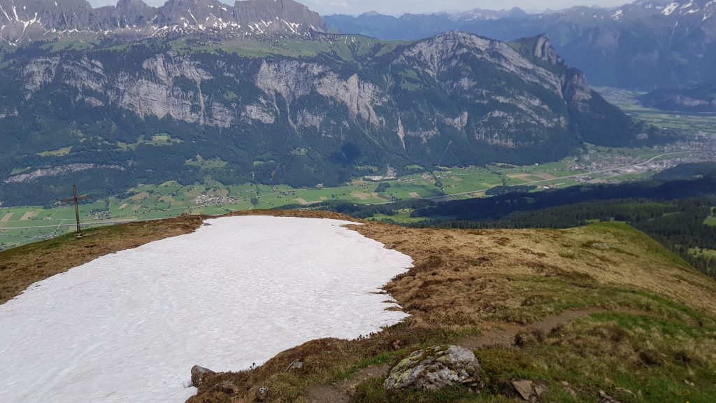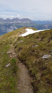 Summary: Lunch over, it is now time to leave the summit, and take the narrow trail further along the ridge, past the cross until we reach the steep trail back down the side of the ridge. Eventually rejoining the trail leading back to Berghotel Schönhalden.